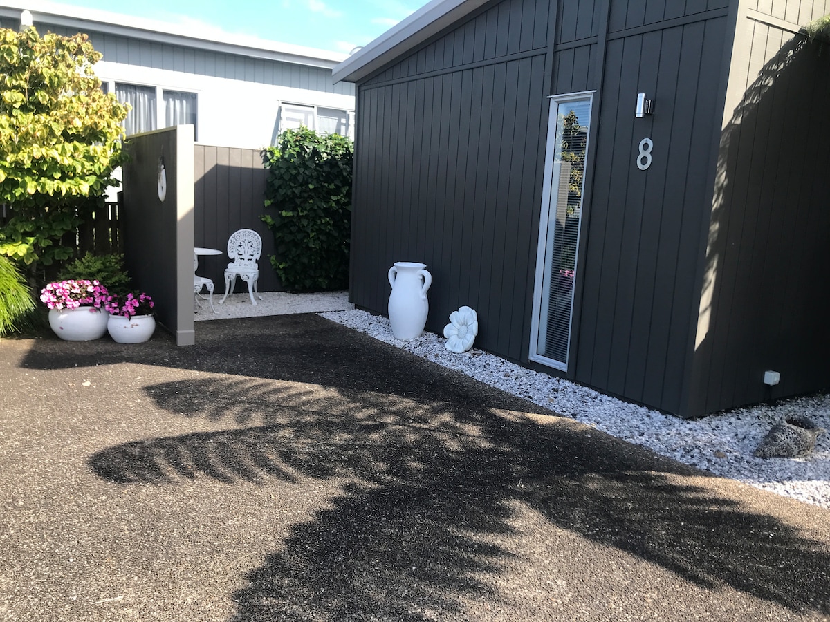 Igumbi lokulala elinamagumbi amathathu elinekhitshi elincinci negumbi lokuhlambela elinomatshini wokuhlamba iimpahla. Ilula kwaye inomoya obandayo okanye oshushu. Ifumaneka kwi-cul de sac ethe cwaka kwimizuzu embalwa xa uhamba ngemoto usiya edolophini okanye elunxwemeni oluhle lwe-Whangamata. Uhambo olufutshane oludlula kwiRSA neWhangamata Club lunokukusa edolophini kwiivenkile nakwiivenkile zokutyela Indawo yokupaka engaphandle kwendlela iyafumaneka ibe indlu ibiyelwe ngokupheleleyo ibe izilungele izilwanyana zasekhaya. Kukho indawo enengca enobukhulu obuhle eyindawo esetyenziswa nangabanye abantu.