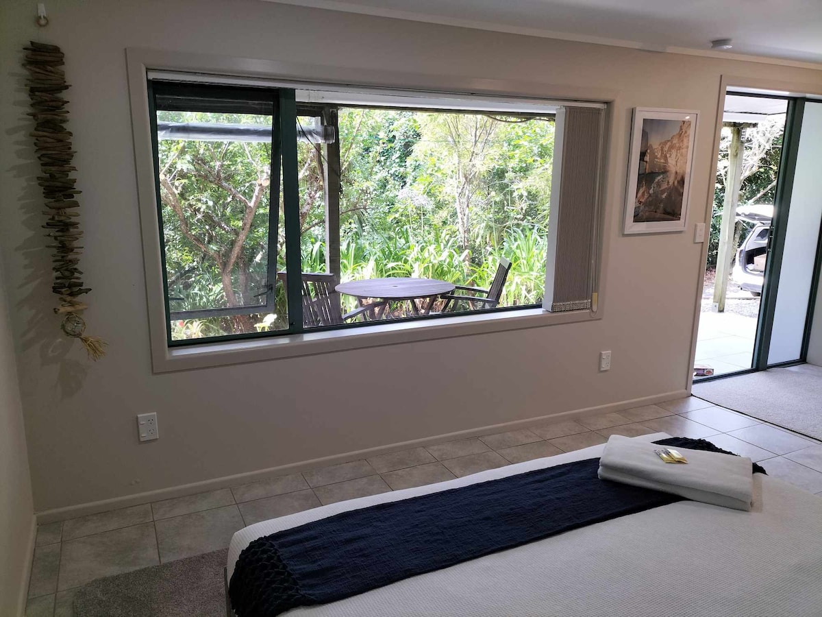 Wamkelekile kwindawo yethu, ababuki zindwendwe bakho uJan noStuart. Sinikezela ngeyunithi yabucala ekwindawo esezantsi yekhaya lethu eliyi-2. Akukho mfuneko yokusebenzisana ngaphandle kokuba ufuna into okanye ungathanda ulwazi lwasekuhlaleni ngezinto onokuzenza. Indawo yethu isembindini weTaurikura Bay entle kuphela eyenziwe ngamatye kumphetho wamanzi ibe ijonge indawo yolwandle. Sijikelezwe ziindlela ezintle zokuhamba ehlathini ezilungele onke amanqanaba okuzilolonga kunye namanxweme amahle onokukhetha kuwo.