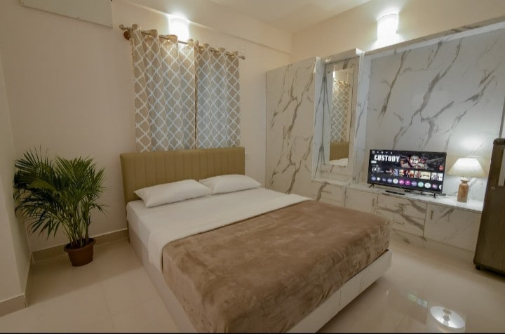 Le yi-Ultra Luxury 1 BHK enezinto ezinokusetyenziswa ezipheleleyo ibe sicebisa ukuba ibe yeyona iphucukileyo kwidolophu eneJacuzzi yabucala kunye nobuhle bale mihla! Ewe sithetha njalo. Nceda utyelele uze wonwabele "I-Essence" UMCELI MNGENI OVULEKILEYO: Ukuba unokufumana indlu efanayo kuthi kwiikhilomitha eziyi-5 ukuya kweziyi-10 ukuze ufumane izinto ezinokusetyenziswa nexabiso, sikunika indawo yokuhlala simahla kule ndlu ! Simamele Iindwendwe zethu: Nceda ubone ukuba iindwendwe zethu zithini ngendawo yethu ibe sikholelwa kwindawo ethi âAtithi Devo Bhavaâ okuthetha ukuba âUndwendwe nguThixoâ