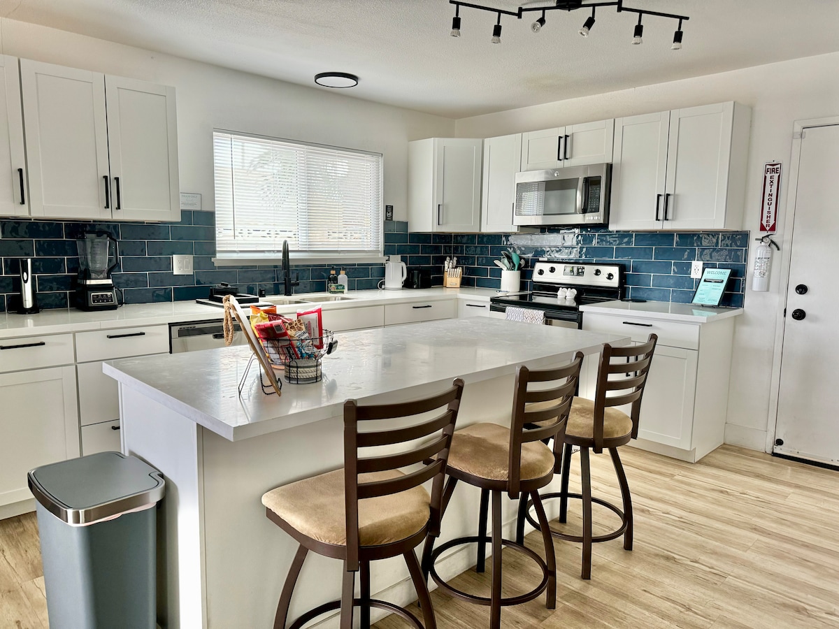 Yonwabela ukuphumla phandle kwi-cabana enomthunzi okanye kwindawo yokulala, ukudibana neendawo zokucima umlilo okanye uphole kwikhaya elitsha elilungisiweyo! Yonwabela ibhafu enamanzi ashushu enamanzi ashushu nepuli enamanzi ashushu. Amaxesha okuqhuba yimizuzu eyi-2 kuphela ukuya kwisikhululo seenqwelo-moya, imizuzu eyi-8 ukuya kwiStrip, imizuzu eyi-12 ukuya kwi-Allegiant Stadium, kunye nemizuzu eyi-14 ukuya kwiZiko leeNgqungquthela. Ikhaya lilala abantu abayi-8 ngokukhululekileyo w/ 3 Queen & 1 King bed! Ikhitshi elihle, indawo yokuhlala, impahla, ipuli nendawo ephandle! I-intanethi ekhawulezayo ye-1000 Mbps. Izilwanyana zasekhaya ezinobungane. Ukutshaya ngaphandle KUPHELA
