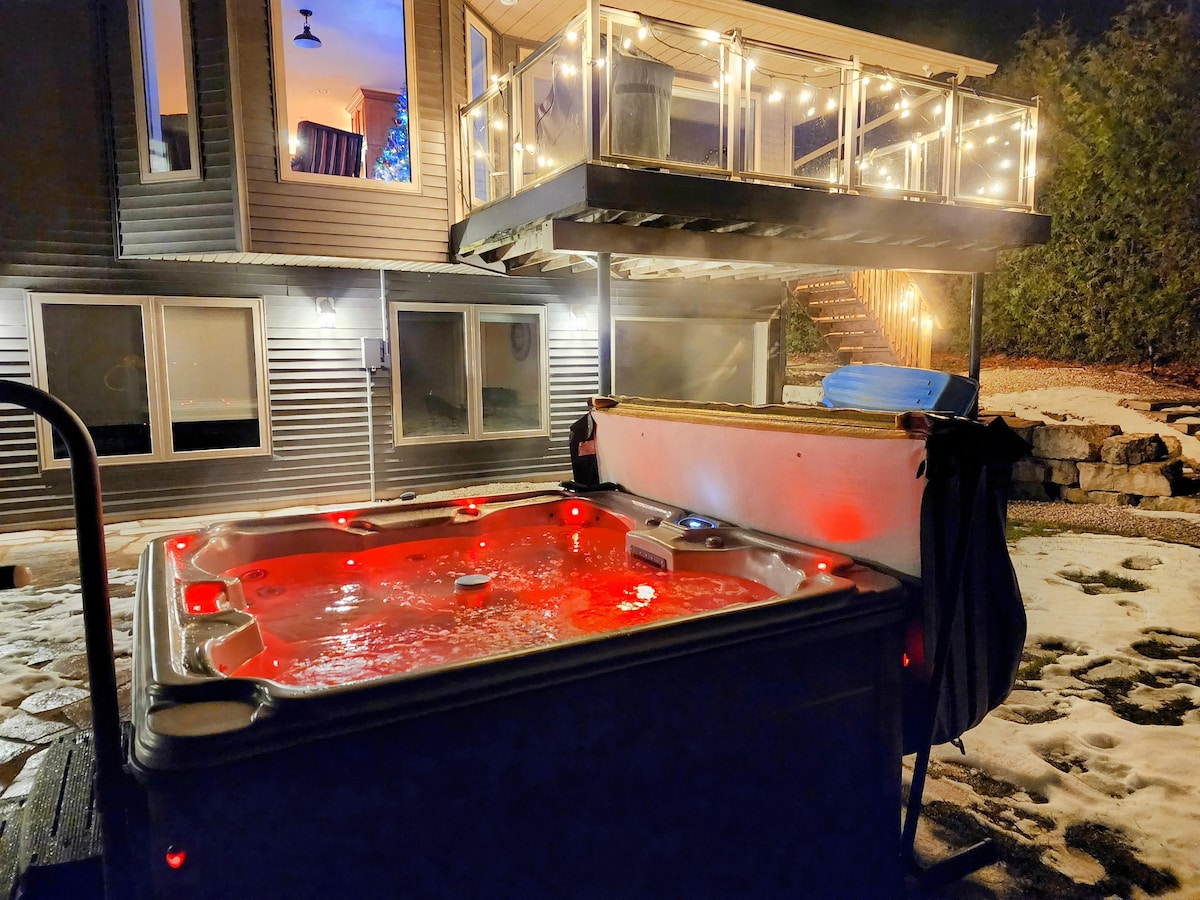 Yiya kwindlu esemaphandleni eqaqambileyo, evulekileyo enokutshona kwelanga okumangalisayo neendawo ezintle zeColpoy's Bay ngaphandle nje kweWiarton! Ilungele iiholide zeqela unyaka wonke ezinamagumbi okulala amakhulu ayi-4, ibhedi enkulu uMurphy namagumbi okuhlambela ayi-3 apheleleyo kuquka i-spa-like master ensuite. Yonwabela indawo evulekileyo enekhitshi elinento yonke, amagumbi entsapho amabini amakhulu aneSmart TV, iveranda ezimbini eziphangaleleyo nendawo evulekileyo yomlilo. Yonwabela ubuhle bendalo beBruce Peninsula ngoxa uphumle kamnandi.