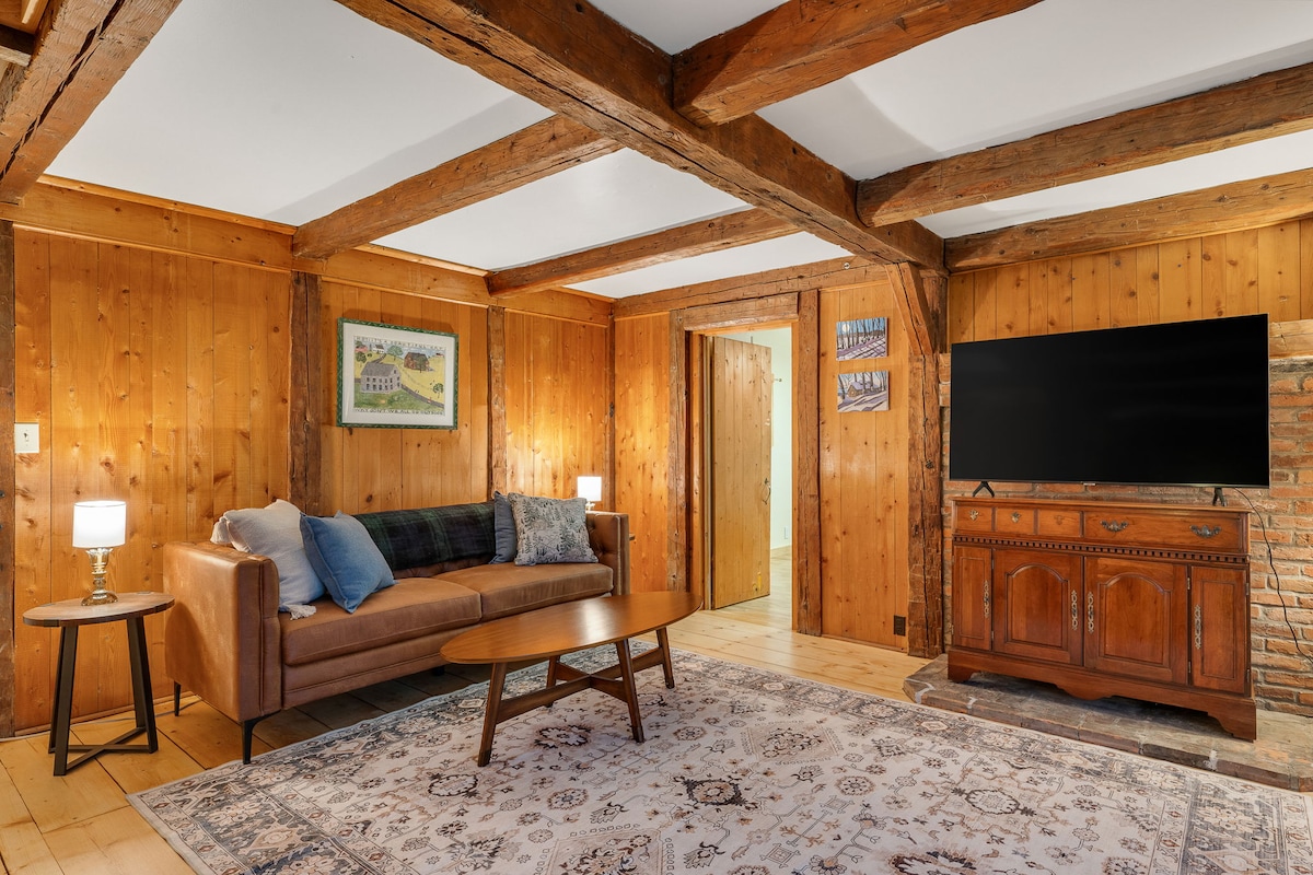 Indlu encinci entle netofotofo, esembindini weenduli eziphakathi eVermont. Imvula okanye ukukhanya, yonwabela iveranda entle egqunyiweyo, phumla kwi-sauna yomgqomo womsedare, i-marshmallow eyosiweyo phezu komlilo weenkuni, jonga zonke izinto ezifumaneka eVermont okanye uphumle lula ngezinto zethu ezinokusetyenziswa ezahlukeneyo ze-spa.