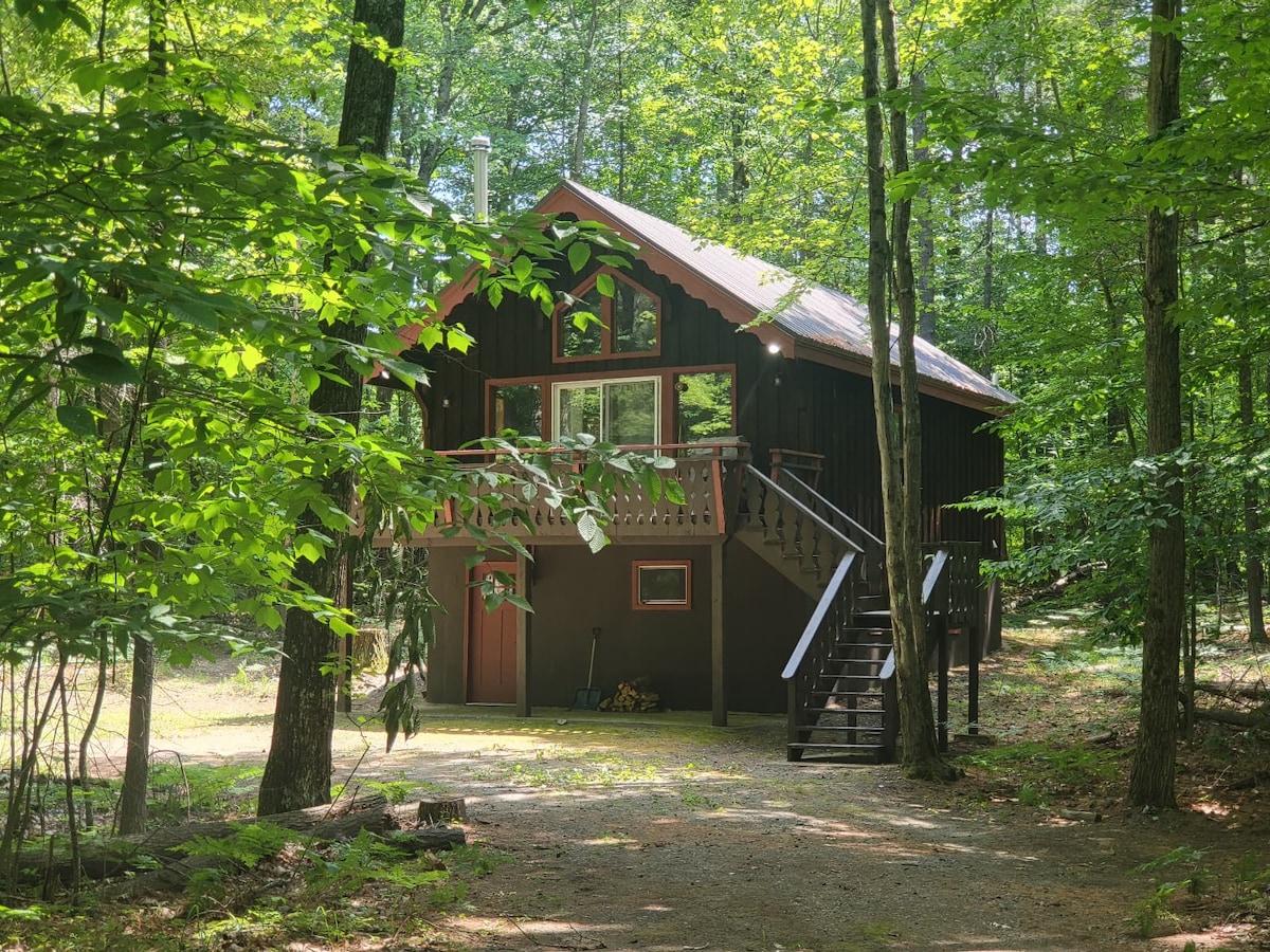 Wamkelekile kwi-Black Pine Lodge! Ihleli embindini weAdirondacks, le ndlu yamaplanga yale mihla eyiA-Frame 3/3 yokuhlambela inokuhlala ukuya kutsho kwiindwendwe eziyi-8. Izinto onokuzisebenzisa: Ibhafu enamanzi ashushu I-Panoramic Barrel Sauna Itafile Yepuli Oomatrasi baseHelix Umgodi Wokubasa Umlilo Ii-kayak Ijikelezwe yimithi emihle le ndawo ibonakala izolile ibe ineendlela ezininzi zokunyuka intaba ngaphandle komnyango wangaphambili. Buka ezinye iindawo zokunyuka intaba, imilambo nokutyela eWilmington, eKeene naseLake Placid. Phelisa usuku lokuphumla kule ndawo yokuhlala enceda wonke umntu.