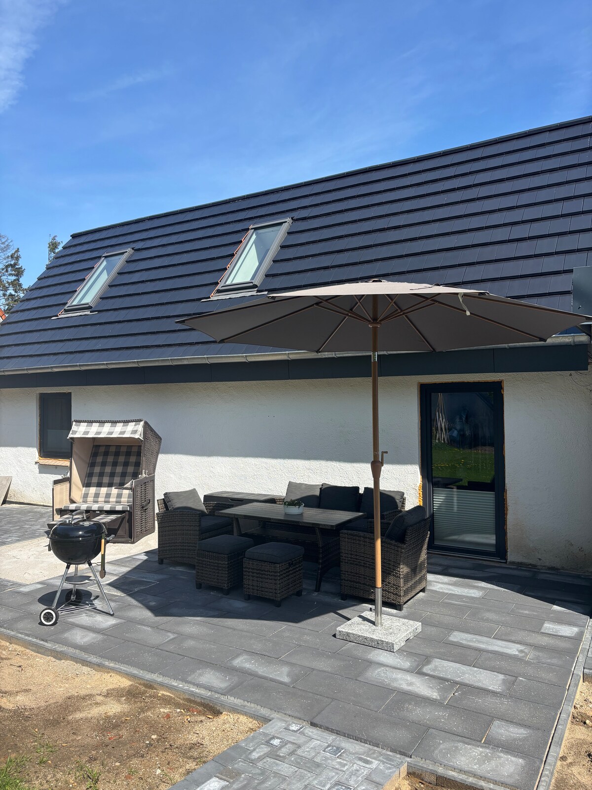 Indlu yethu eyakhiwe ngamaplanga "Haus Lieschen" ibekwe embindini weGoosefeld phakathi kwemithi ye-birch kunye ne-meadow eluhlaza. Le ndlu yayilungiswe kakuhle nangothando ngo-2020/2021. Kukho amagumbi okulala amabini, indawo enkulu yokuhlala neyokutyela. Yonke into sinefenitshala ethande iinkcukacha. Isitovu esitshisa iinkuni, iisofa, kunye nomtsalane ocingisisiweyo wophahla oludala olungiselelwe kakuhle. Indlu yethu ijikelezwe yigadi enkulu enebhokisi enkulu yesanti. Ulwandle lwaseBaltic lukude kangangeekhilomitha eziyi-5.