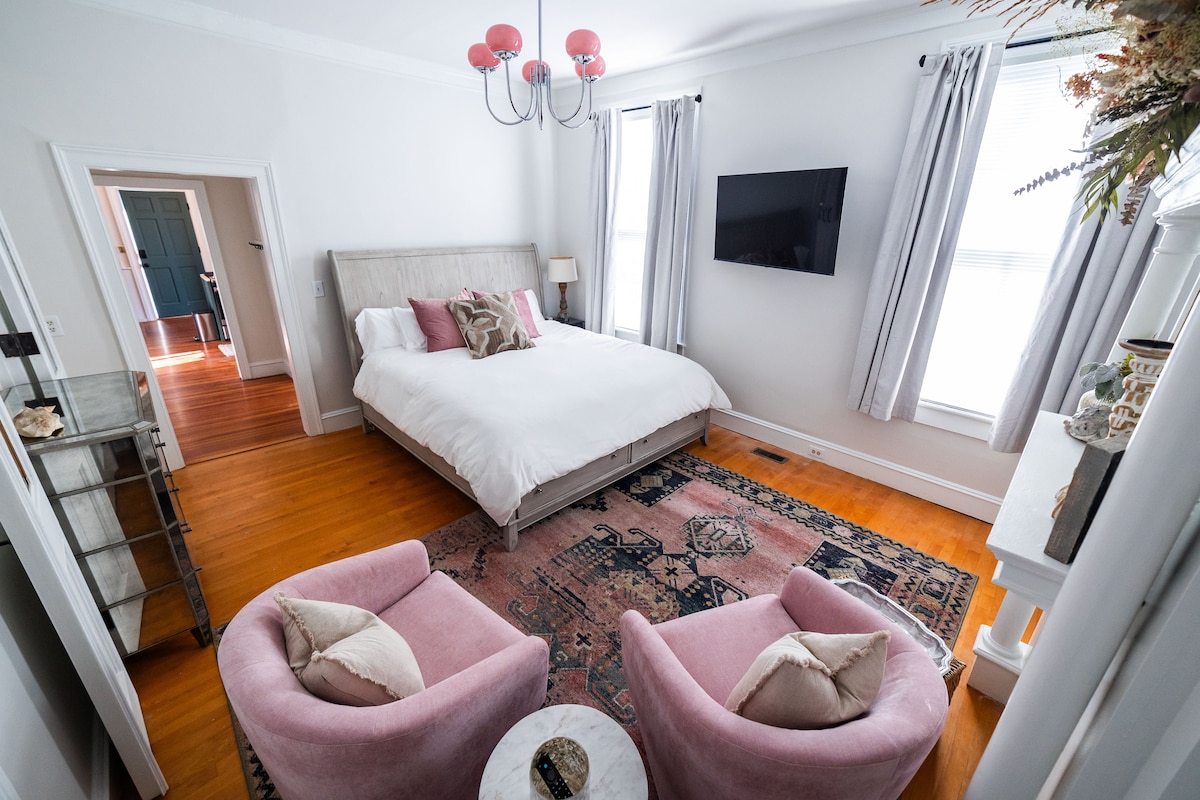 Phinda uvuselele kwiSerenity House! Iflethi ekumgangatho wesibini; amagumbi okulala amakhulu amathathu ane-SmartTV, ikhitshi elincinci, indawo yokusebenzela eneWiFi, igumbi lodaka neempahla kumgangatho wokuqala. Iyadi enkulu enemithi emikhulu enomthunzi ovuthiweyo okwingingqi ethe cwaka. Enye i-corgi kunye neekati ezimbini zihlala kule ndlu. Izilwanyana zasekhaya azivumelekanga ukuba zingene kumagumbi eendwendwe. Isidlo sakusasa esisemgangathweni sihanjiswa kwindawo esetyenziswa nangabanye abantu. Indawo yokungena yabucala, indawo yokupaka engaphandle kwesitrato iyafumaneka.