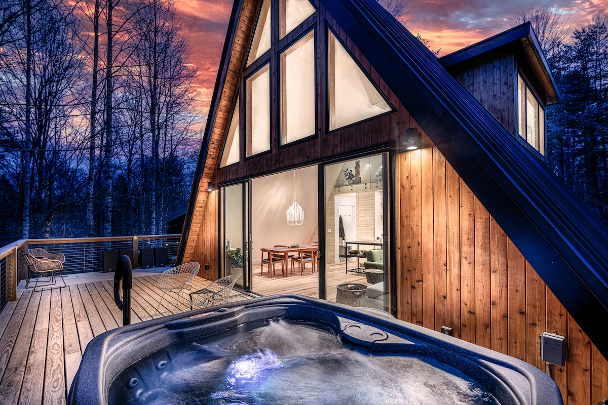 Secluded A-Frame w/ Hot Tub • Blue-Hour Magic