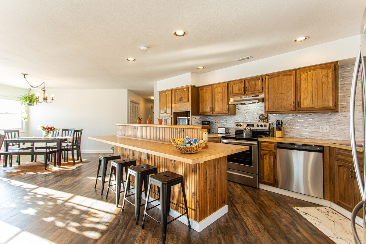 Indawo efudumeleyo netofotofo enamagumbi okulala ayi-4 w/ 2 igaraji yemoto elungisiweyo nehlaziyiweyo kuAirbnb. Kukho ibhafu enamanzi ashushu yabucala neyadi engasemva enefenitshala yeveranda. Zonke izinto zabucala azabelwana ngazo. Zonke izixhobo ezintsha kunye nefenitshala kunye neeTV eziyi-75inch kunye ne-82inch Kuwo omabini amagumbi okuhlala. Ii-smart TV ezifakwe kwigumbi ngalinye ezineenkonzo eziphambili zokudlala kwi-intanethi nesantya esiphezulu. Ilungele intsapho ibe iyonwabisa kuyo yonke iminyaka. Le ndawo inento yonke wena nentsapho yakho eniza kuyidinga ukuze nihlale kamnandi