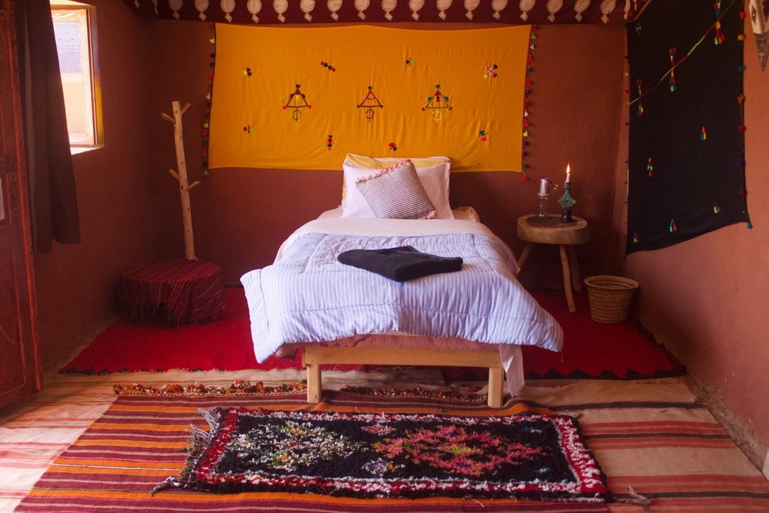 Salam Aleikum, mhambi! Sikumema kwiparadesi yethu encinci engumyezo ekupheleni kweSahara. Uza kuhlala kwigumbi elilula nelinomtsalane; isidlo sakusasa siqukiwe. Isidlo sangokuhlwa kunye nokhenketho lwasentlango kunokubhukishwa kuthi. Iishawa zale mihla ezinamanzi ashushu nezindlu zangasese ezihlangabezana nemigangatho yaseNtshona zikwigumbi lokuhlambela elahlukileyo. Ukuba nexesha lokudibana nabanye abantu kunokwenzeka – njengokuba kunjalo nokuba wedwa. Indawo yokuthi cwaka, yendalo, neyokubona iinkwenkwezi. Yiba lundwendwe lwethu!