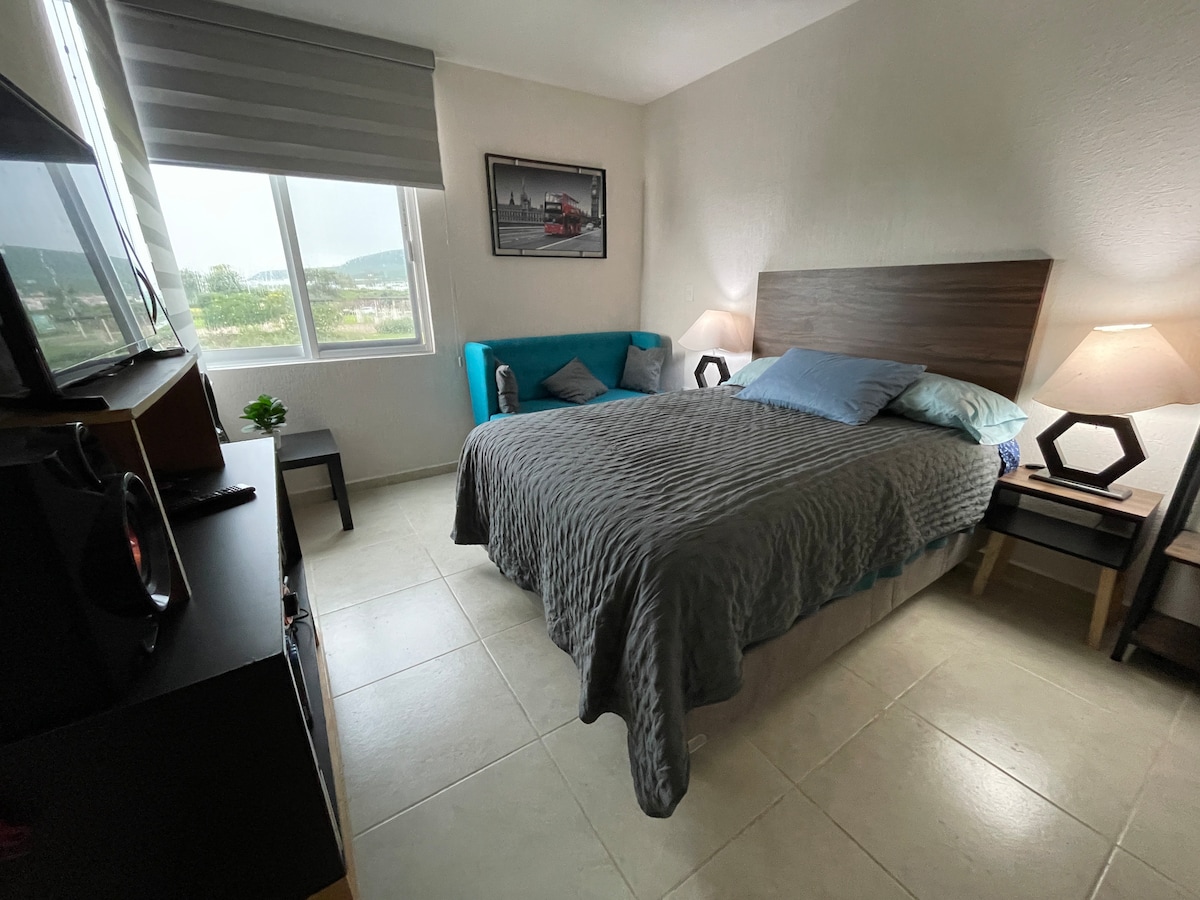 Yonwabela ukutyelela kwakho eQueretaro kwiflethi enefenitshala enkulu ibe itofotofo kakhulu ngenxa yeendawo zayo ezinkulu. Igumbi lokuhlala, igumbi lokutyela. Amagumbi okulala ayi-2. Ibhedi eyi-1 KS, ibhedi eyi-1 neMat sofa eyi-1. Iifeni. Ikhitshi elinezixhobo. Amagumbi okuhlambela ayi-2 apheleleyo. I-WiFi. I-cable TV. I-BT Soundbar e-Sala. Alexa. Umatshini wokuhlamba izitya. Ibhalkhoni w/ itafile nezitulo ze-2. Ukupaka iimoto eziyi-2. Ukujonga iiyure eziyi-24 kwiflethi evaliweyo. Indlela ephucukileyo yokutshixa nge-elektroniki. I-Plaza Antea ne-Uptown (imizuzu eyi-8. Imizuzu eyi-15 ukusuka kwingingqi esedolophini. Imizuzu eyi-25 ukusuka kwisikhululo seenqwelo-moya.