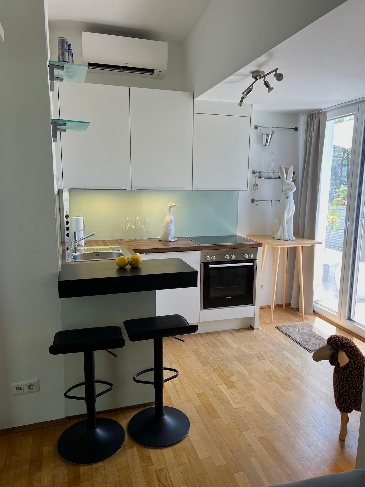 Die Wohnung befindet sich ruhig am Stadtrand, mit freiem Blick auf die Berge und großem Balkon. Wanderwege starten direkt vor der Haustür. Die Einrichtung ist hochwertig, mit Klimaanlage und komplett ausgestatteter Küche. Ein eigener Parkplatz und separater Eingang sind vorhanden. Der Bahnhof ist 5 Minuten entfernt, das Stadtzentrum in 15 Minuten erreichbar. Gäste erhalten die Innsbruck Welcome Card, mit der sie Busse und Bahnen kostenlos nutzen können.